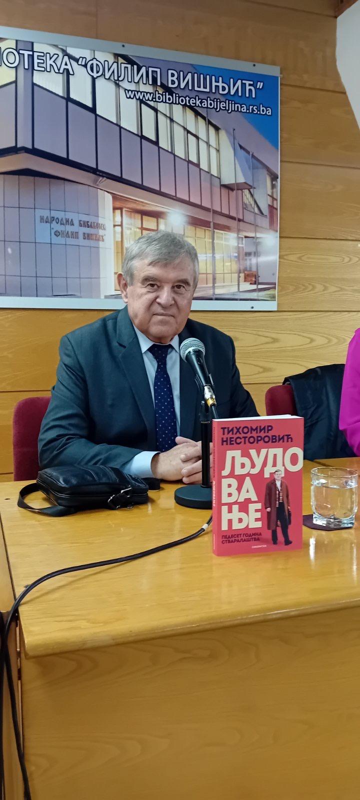 U Narodnoj biblioteci “Filip Višnjić” večeras je, u okviru ovogodišnjih “Višnjićevih dana” predstavljena nova knjiga Tihomira Nestorovića, poznatog bijeljinskog novinara, hroničara i književnika, pod nazivom “Ljudovanje”.