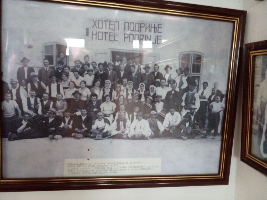 Čak je formirao i krojački kurs za djevojke. To je za nas danas istorijska fotografija. Mještani su ga ispratili ispred hotela “Podrinje”, kasnije je to bila kafana sa istoimenim nazivom, preko puta škole, gdje je i nastala ova fotografija. Pored Dušana, na fotografiji je i njegova supruga Ruža”, priča nam Padomir Perić.