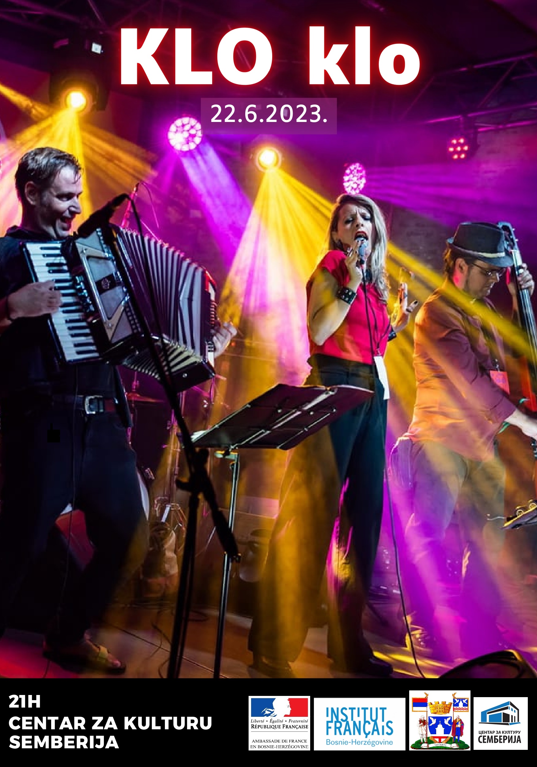 Bijeljinski ljubitelji muzike 22. juna će imati priliku da uživaju u nastupu novosadskog akustičnog ansambla „Klo klo“ koji njeguje raznoliko žanrovsko izvođenje na harmonici, akustičnoj gitari, kontrabasu i perkusijama u kombinaciji sa vokalom Vanje Manić-Matić.