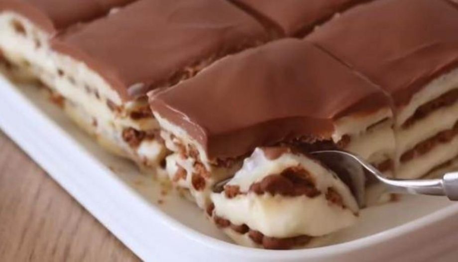 Kuvajte dok se ne zgusne, uz neprestano miješanje. Umočite keks u kafu (pomiješana kašičica kafe sa vrelom vodom), pa poređajte u kalup. Preko premažite fil, pa opet poredajte keks. Tako redajte dok ne utrošite sve sastojke, a posljednji red neka bude fil. Istopite čokoladu sa slatkom pavlakom, pa prelijte preko.