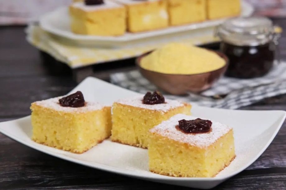 U veliku posudu za miješanje razbijte jaja, ubacite šećer, vanilin šećer i so, pa kratko ručno izmiješajte. Dodajte ulje, kiselu pavlaku i mlijeko, ubacite kukuruznu krupicu, brašno i prašak za pecivo. Sve ručno izmiješajte pjenjačom da se dobije jednolična smjesa. U izmiješano ubacite svježi kravlji sir i opet kratko promiješajte. Pleh dimenzija 35×20 cm namastite i izlijte napravljenu smjesu, poravnajte je i pecite u rerni zagrijanoj na 180 stepeni 45 minuta. Ispečenu zlevanku malo prohladite, pa pospite šećerom u prahu. Svaki narezani komad ukrasite s malo džema.