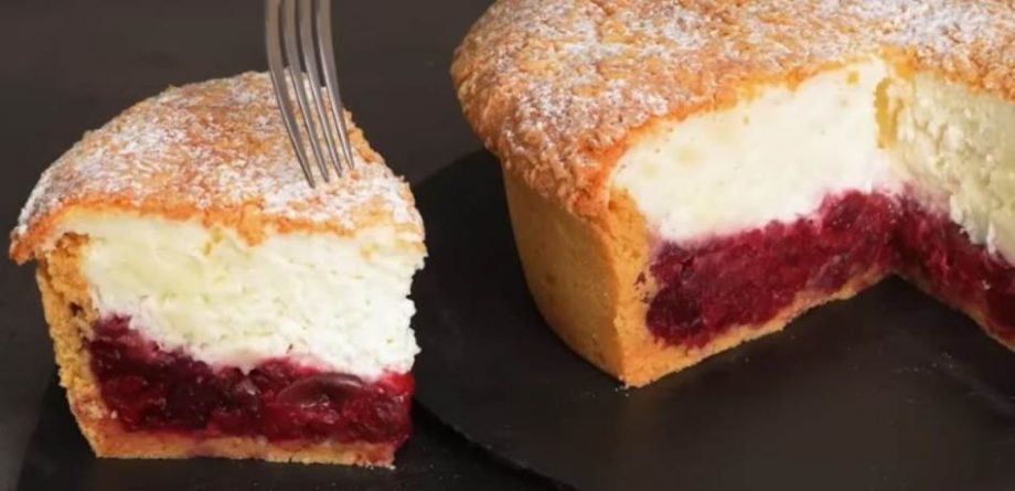 Žumanca umutite sa kašičicom soli i šećerom u prahu, pa dodajte vanilu, prosijano brašno i prašak za pecivo. Umijesite tijesto, pa odvojite 1/3 tijesta, umotajte u foliju i stavite u frižider. Preostalo tijesto utisnite u kalup koji ste obložili pek papirom i lijepo raširite po dnu i obruču. U šerpu sipajte maline, pa dodajte 70 g skorba i 150 g šećera. Sipajte i vodu, promiješajte, pa kuvajte dok se smjesa ne zgusne, uz neprestano miješanje. Dobijeni voćni fil sipajte preko testa. Jogurt pomiješajte sa 130 g skroba i dobro sjedinite. Zatim dodajte vanilu i promiješajte. Bjelanca umutite sa kašičicom soli u čvrst šne, pa pomiješajte obe smjese. Sipajte preko voćnog fila, a preko izrendajte tijesto koje ste odvojili. Pecite u rerni na 180°C oko sat vremena.