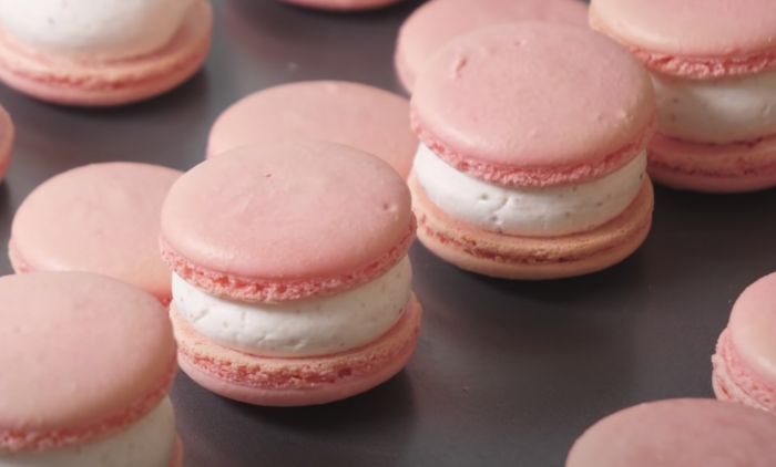 Francuski makaroni sa jagodama su nježni, sendvič kolačići punjeni svijetlim puter kremom sa ukusom jagode. Iznenadite vaše najmilije sa ovom sofisticiranom poslasticom.