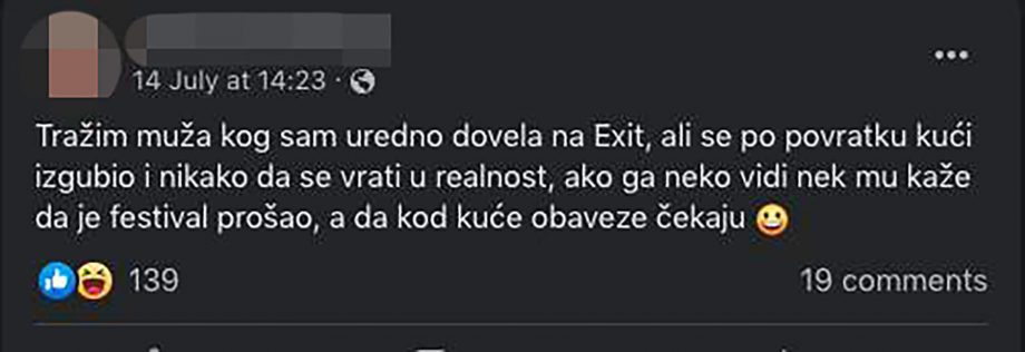 Međutim prepiske u Fejsbuk grupama koje se bave temom Egzita su prešle sa razmjenjivanja utisaka na traženje propuštenih ljubavnih šansi sa festivala.