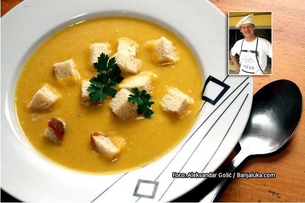 Prilikom posluživanja mozete dodati kockice starog prosušenog hljeba i sjemenke.