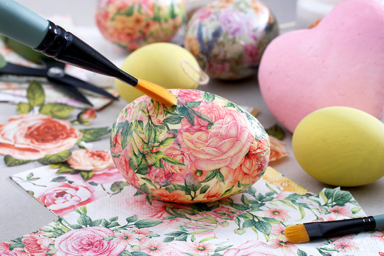 Dekupaž je omiljena tehnika za farbanje jaja. Izbor motiva, ukrasa je beskonačan. I svako jaje biće pravo malo umjetničko djelo.