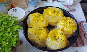 Peći na 200 stepeni 40 minuta da lijepo zarumeni. Servirati toplu uz jogurt i kiselo mlijeko.
