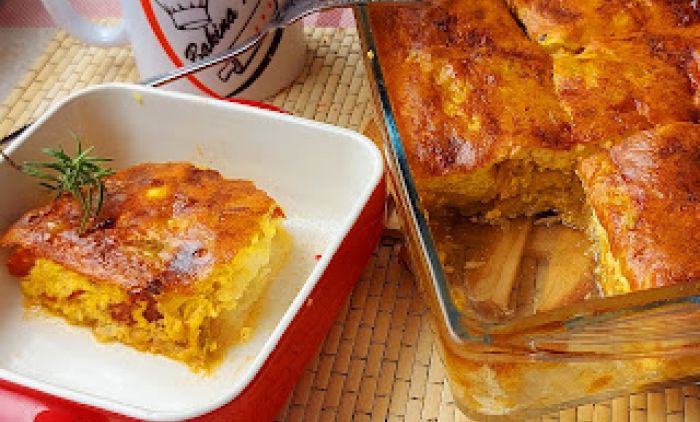 Ubaciti bijeli luk, mljeveni biber i mljevenu papriku i kad se malo proprži i omekša ubaciti u manji podmazan pleh. U pavlaku dodati jaja i na kocke kačkavalj. Preliti kupus i protresti da spadne pavlaka na dno.