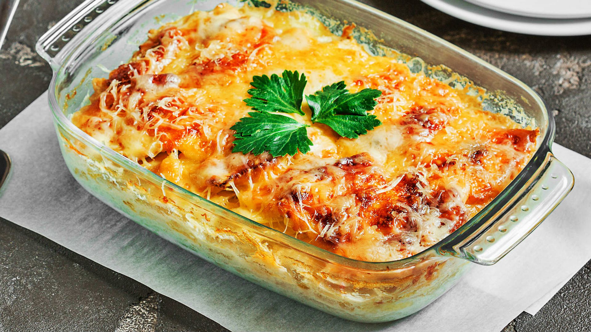 Rernu zagrijati na 180 C. Staviti jelo u vatrostalnu posudu ili običnu tepsiju. Posuti sitno rendanom mocarelom i sitno iscjekanom “chilli” papričicom. Staviti u rernu da se zapeče 20-ak minuta i ručak je gotov.