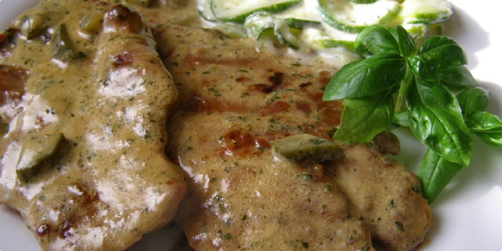 Trapist izrendati na krupno, peršun sitno isjeckati a meso isjeći na šnicle.