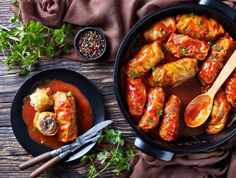 Bijeli luk oljuštiti i izgnječiti ili sitno iseckati. U tiganj staviti malo maslinovog ulja da se zagrije, prvo staviti luk da se kratko uprži, pa praziluk i šargarepu i na laganoj vatri udinstati da se praziluk udinsta, a šargarepa malo omekša. Prženo povrće prebaciti u sud u kojem će te pripremati nadjev, dodajte izgnječen bijeli luk, pirinač, so, mleveni biber i mljevenu crvenu papriku.