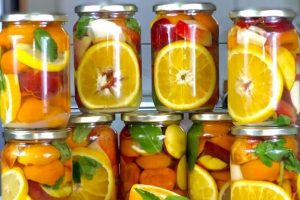 Voće dobro oprati i isjeckati po želji. Zatim ređati u prethodno sterilisane tegle, u svaku teglu dodati dve kašike kristal šećera i naliti hladnom vodom. Ponavljati proces dok ima materijala.
