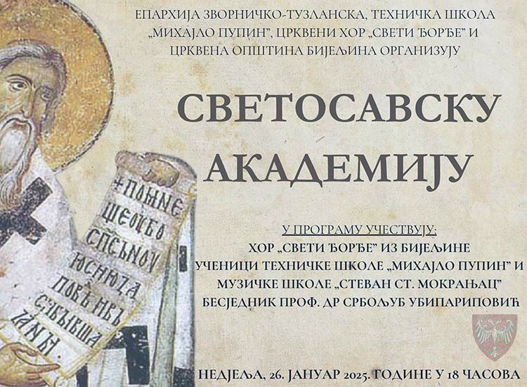Svečana Svetosavska akademija biće održana u Eparhijskom kulturnom centru u Bijeljini sa početkom u 18.00 časova.