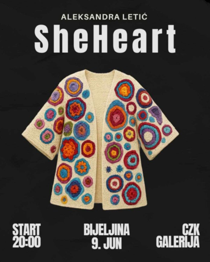 Ljubitelji umjetnosti i poštovaoci savremenog stvaralaštva imaće priliku da 9. juna u 20.00 časova, u Galeriji Centra za kulturu u Bijeljini, prisustvuju otvaranju samostalne izložbe Aleksandre Letić pod nazivom “SheHeart“.