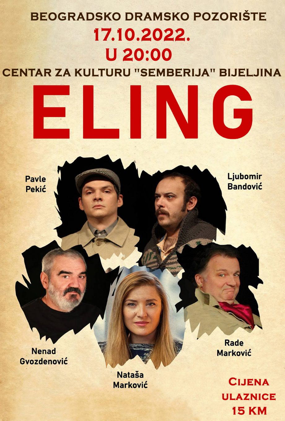 Centra za kulturu “Semberija” Bijeljina , 17.10.2022. u 20:00 časova.