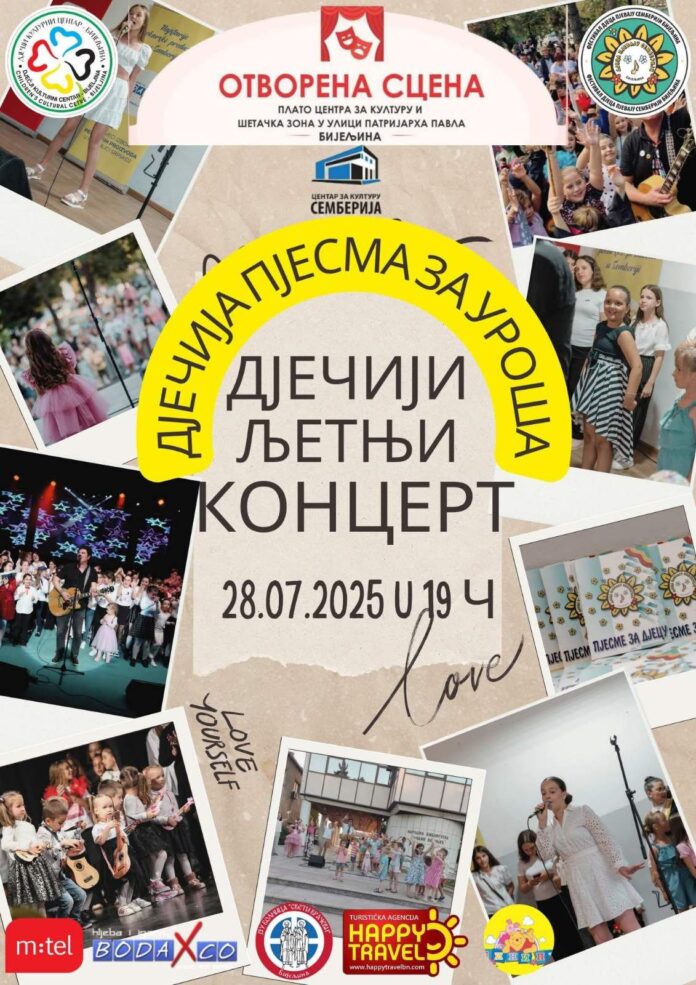U ponedjeljak, 28. jula 2025. godine s početkom u 19.00 časova, šetačka zona ispred Centra za kulturu u Bijeljini postaće pozornica dječje radosti i humanosti. Dječiji kulturni centar Bijeljina organizuje ljetnji koncert “Dječija pjesma za Uroša”, na kojem će mali izvođači, učesnici festivala “Djeca pjevaju Semberiji”, svojim izvedbama skrenuti pažnju na težak položaj osmomjesečnog Uroša Iljića.