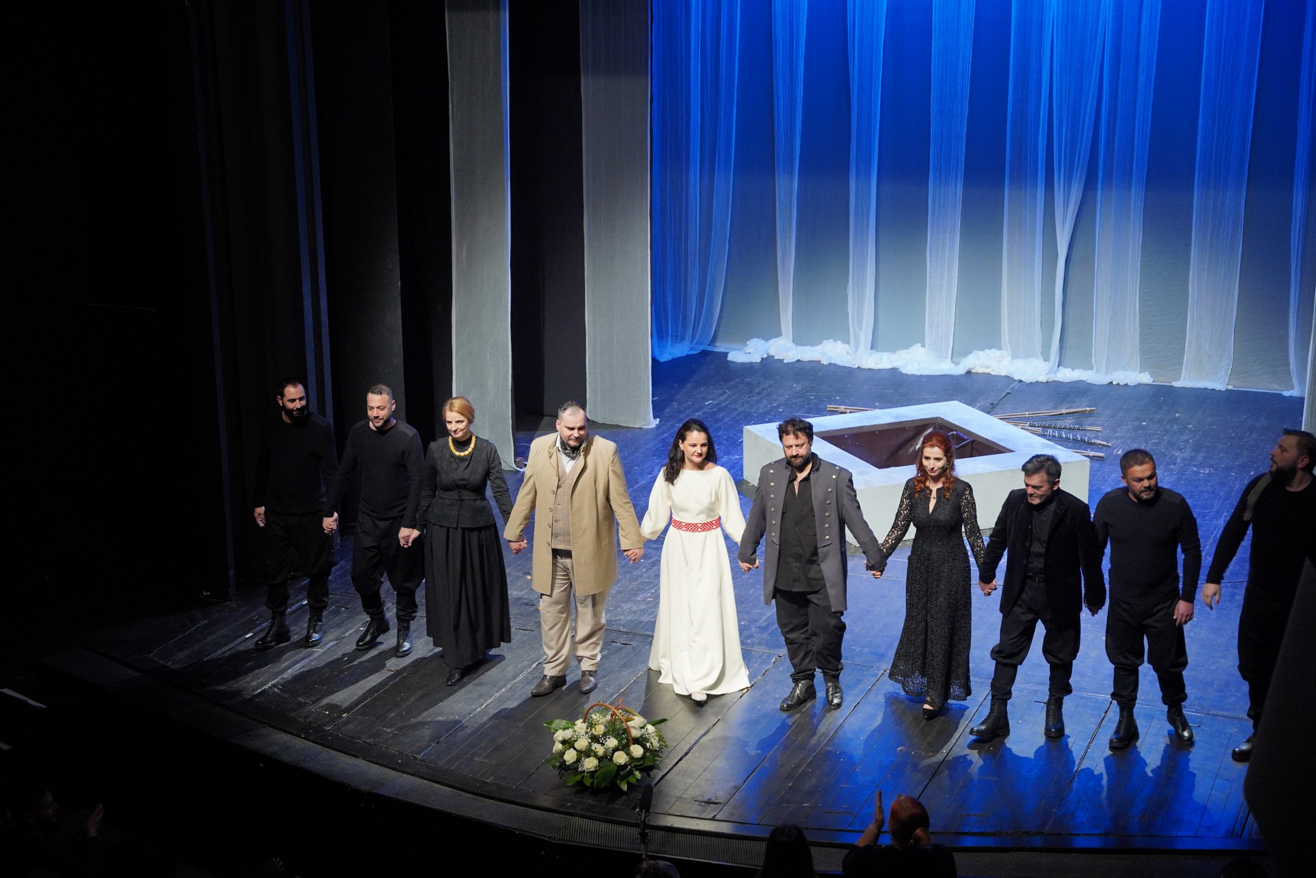 U ovom komadu rađenom prema istoimenoj baladi, u dramatizaciji akademika LJubomira Simovića, učestvuju i tri glumca Srpskog narodnog pozorišta Novi Sad: Bojana Milanović, Sonja Damjanović i Milan Kovačević. Bijeljinski glumci su Mihailo Maksimović, Dušan Ranković, Nenad Blagojević i Ivan Petrović, a iz NP RS Banjaluka u predstavi igraju LJiljana Čekić, Goran Jokić i Ognjen Kopuz. Sama produkcijska zamisao i dvogodišnja priprema, nisu ništa prepustili slučaju: angažovana je trenutno daleko najaktuelnija scenografkinja u regionu Marija Kalabić, kostime potpisuju višestruko nagrađivane Marina Sremac i Jasmina Radujko, Igor Greksa radio je scenski pokret, a lektor je bio čuveni profesor Radovan Knežević. Koliko se vodilo računa o detaljima, govori i angažovanje dizajnera svjetla, vrhunskog stručnjaka Zdenka Medveđa. Angažman Vlatka Stefanovskog, koji je napisao originalnu muziku za ovu predstavu sigurno joj dodaje još jedan veliki i snažan umjetnički momenat.