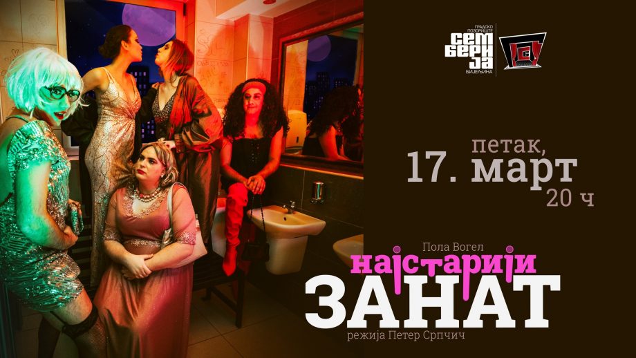 Predstava Gradskog pozorišta Semberija “Najstarijizanat” po tekstu Pole Vogel, u režiji Petera Srpčiča, premijerno je odigrana 3. februara pred pred punomsalom Centra za kulturu.
