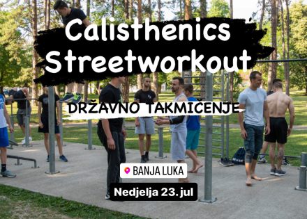 Calisthenics & Streetworkout zajednica Banjaluka poziva sve zainteresovane osobe koje treniraju „na šipkama“ da se prijave za učešće u državnom takmičenju u „Strength“ i „Power“ kategorijama koje će se održati 23. jula u periodu od 15:00 do 21:00 časova u parku Mladena Stojanovića u Banjaluci.