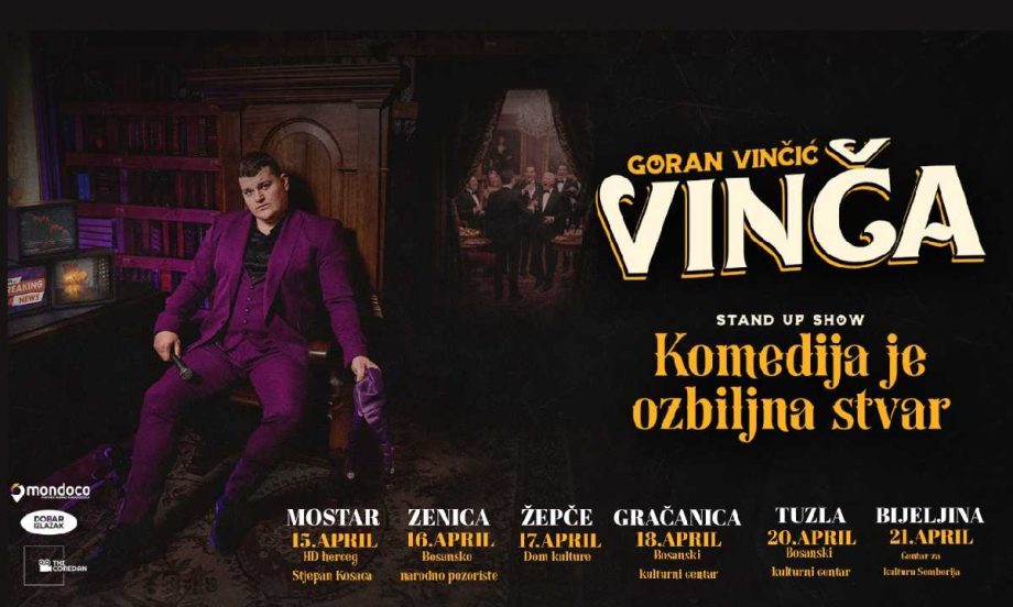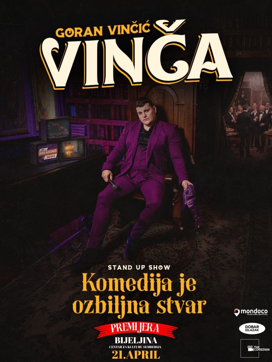 Jedan od najtraženijih stand-up komičara u regionu, Goran Vinčić Vinča, gostovaće u Bijeljini sa svojim novim autorskim projektom „Komedija je ozbiljna stvar“, koji će biti izveden 21. aprila u Centar za kulturu Semberije.