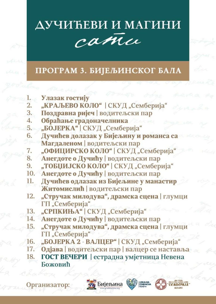 Pored svečane večere, posjetioce očekuje balski performans u izvođenju članova SKUD „Semberija“, kao i nastup poznate muzičke umjetnice Nevene Božović, poznate širom regiona i po učešću na Evroviziji.