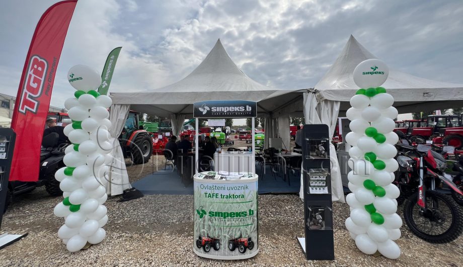 U to ime, u okviru predviđenih sajamskih nagrada, poklanjamo tanjiraču sa dvadeset tanjira i dva rasipača đubriva od 345 litara, marke “Agrina”. Ove godine na sajmu smo predstavili širok asortiman, naravno, kao betseler, izložili smo traktore “tafe”, sve priključne mašine raznih brendova. Inače, firma “Sinpeks.b” je generalni uvoznik svih poljoprivrednih mašina, a novina za ovu godinu su mopedi. Izložili smo i kroserice, kvadove i neku sitniju robu.