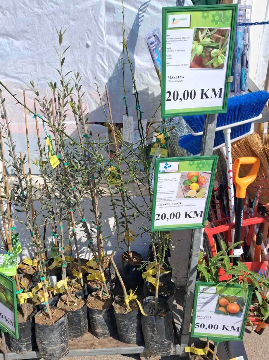 U poljoprivrednim apotekama, nakon nedavne sadnje voća, ponuda sadnica je i dalje bogata, a među kupcima pažnju privlače i pomalo egzotične vrste. Tako se mogu kupiti sadnice japanske kruške po cijeni od 39 KM, smokve za 18 KM, citrusa i masline po 20 KM.