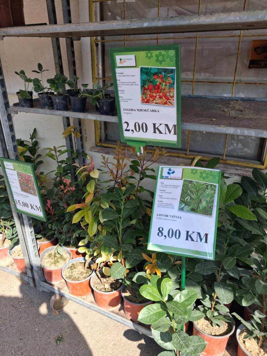 U ponudi su i ukrasne biljke i voćne vrste poput ruže stablašice (20 KM), drijena (20 KM), lovora (15 KM), kao i jagode mjesečarke čija cijena iznosi 2 KM po sadnici.