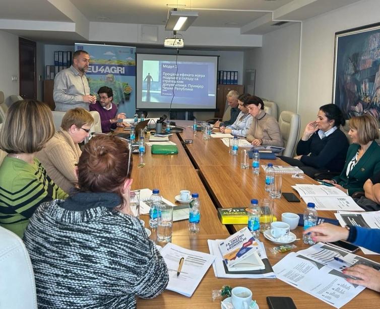 U okviru projekta “Jačanje institucionalnih kapaciteta u poljpoprivrednom sektoru”, u prostorijama Ministarstva održan je trening u oblastima: strateškog planiranja, procjene efekata mjera podrške, poljoprivrednom tržišno-informacionom sistemu i fondovima EU. Pored toga u proteklih nekoliko mjeseci izrađeno je više dokumenata značajnih za izvještavanje o sprovedenim mjerama podrške u poljoprivredi.