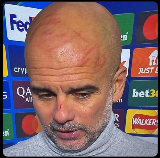 Menadžer Mančester Sitija Pep Gvardiola pojavio se u ranama po licu i glavi poslije stresnog meča sa Fejnordom u kojem je njegov tim ispustio vođstvo od 3:0.