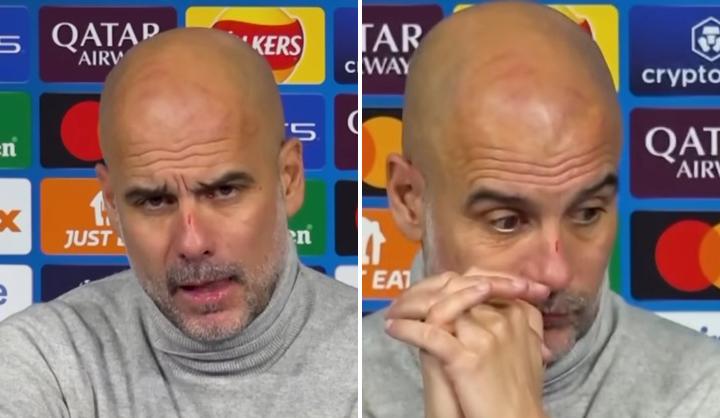 Gvardiola se pred novinarima pojavio sa vidnim ogrebotinama na glavi, tik iznad čela.