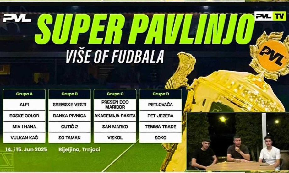 A već dan kasnije, subota i nedjelja, 14. i 15. juna,na programu je novo veliko takmičenje pod nazivom Super Pavlinjo Liga, koje okuplja čak 20 timova iz četiri grupe: