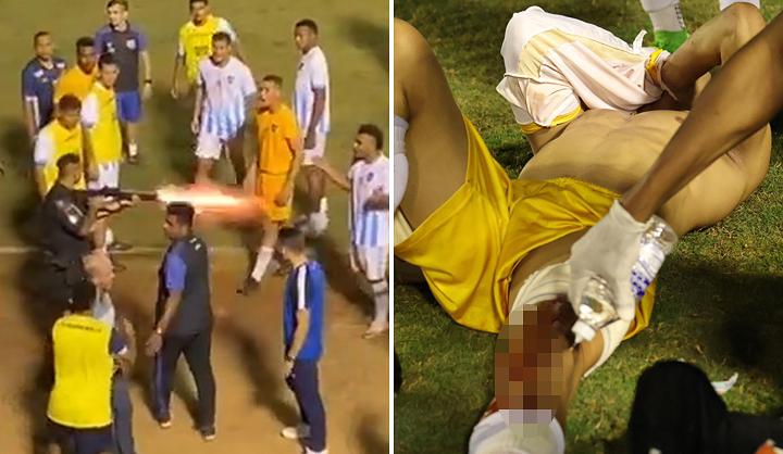 Nasilje u brazilskom fudbalu poprimilo je novu dimenziju prethodne noći kada je policajac, u namjeri da smiri tenzije na meču dva tima, upucao jednog fudbalera u nogu.