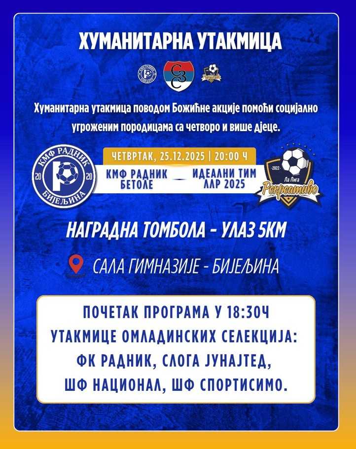 I ove godine, u susret najradosnijem hrišćanskom prazniku, organizuje se humanitarna utakmica između KMF Radnik i Idealnog tima La Lige Rekreativo 2025.