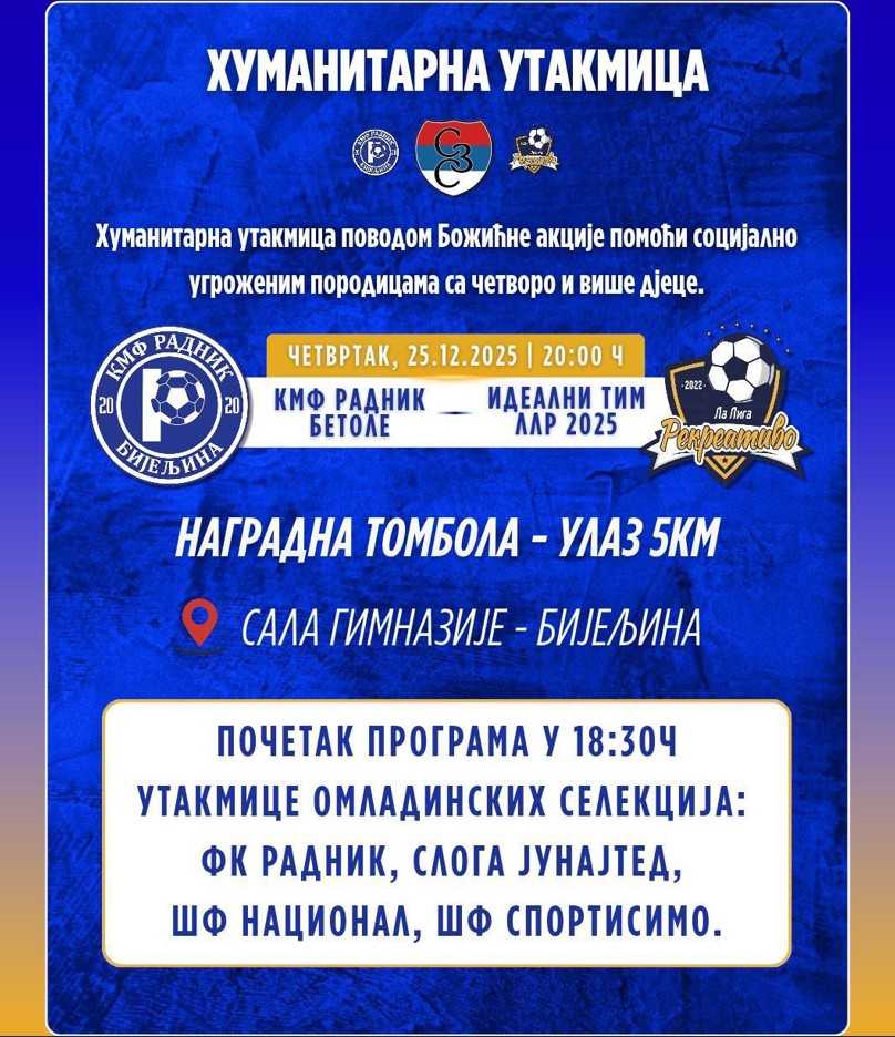 I ove godine, u susret najradosnijem hrišćanskom prazniku, biće organizovana humanitarna utakmica između KMF Radnik i Idealnog tima La Lige Rekreativo 2025.