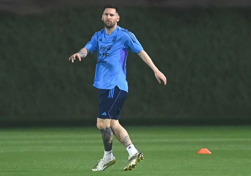 epa10314867 Lionel Messi of Argentina warms up during a training session in Doha, Qatar, 19 November 2022. The FIFA World Cup 2022 will take place from 20 November to 18 December 2022 in Qatar. EPA-EFE/NEIL HALL
