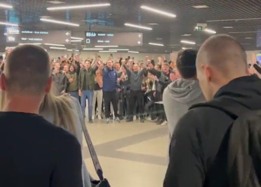 Grobari su pozdravili svoje heroje pjesmom i aplauzom.