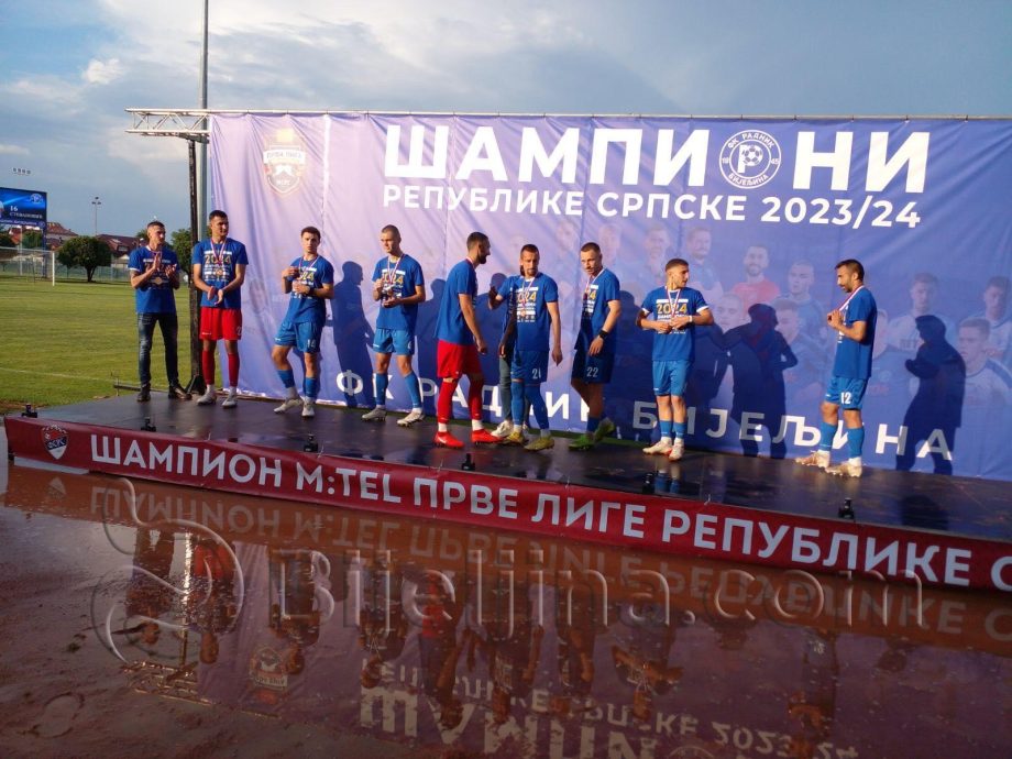 Na Gradskom stadionu večeras se slavilo. Proslavljena je još jedna šampionska titula, obezbijeđeno je prvo mjesto u Šampionatu Republike Srpske i prelazak u viši rang takmičenja, u Premijer ligu BiH.