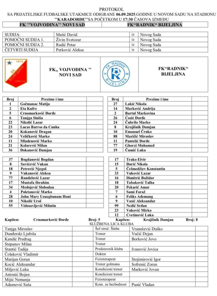 “WPriliku da upiše svoje prve seniorske minute je dobio i član naše juniorske selekcije Mirko Vuković (2008), koji je u 79. minutu zamijenio strijelca drugog gola Pantelića. Zahvaljujemo se našim sportskim prijateljima @fk_vojvodina na gostoprimstvu i domaćinstvu, te im želimo puno uspjeha u nastavku sezone”, navode iz FK Radnik.