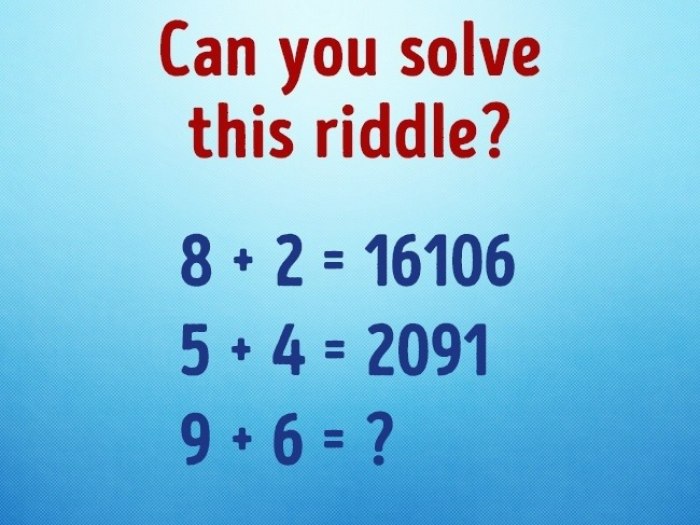 Dat je niz od tri matematičke operacije a vi treba da otkrijete koje je rešenje treće jednačine.