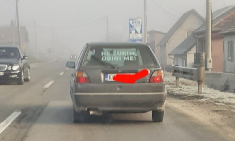 Na fotografiji koja je jutros osvanula na društvenim mrežama može se vidjeti neobična situacija iz Modriče, gdje se jedan vozač odlučio da na zadnju šajbu svoga “golfa dvojke” postavi urnebesu poruku.