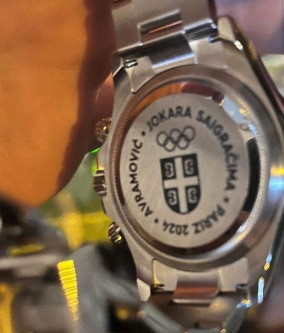 Na svakom satu ugraviran je grb Srbije, prezime igrača i poruka “Jokara saigračima”.