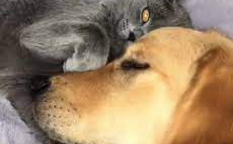 Pas i mačka leže priljubljeni jedno uz drugo dok mačor čisti pseću njušku, a pas se ne buni. Štaviše, uživa.