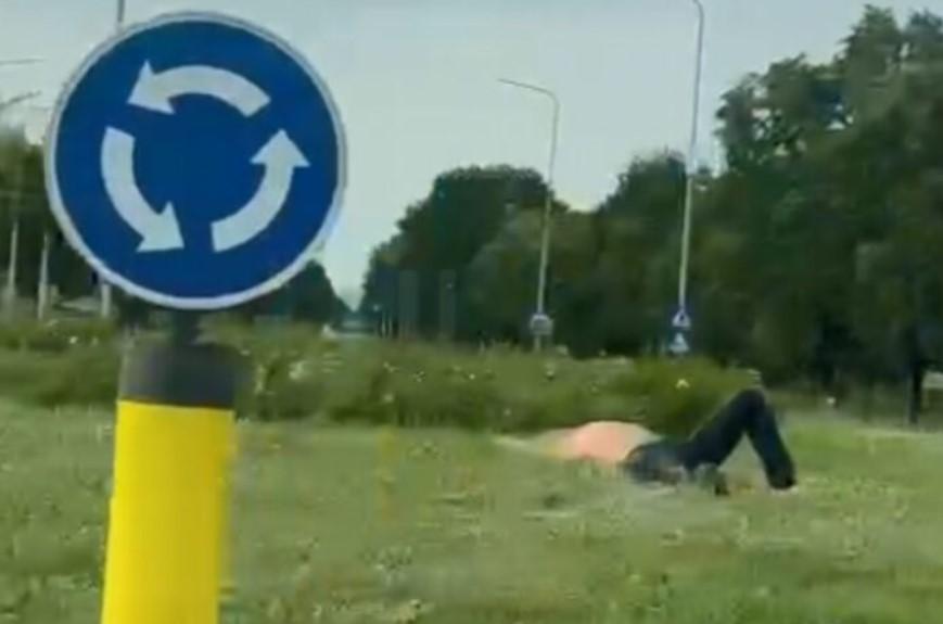 Kako se vidi na snimku, ovaj čovjek je našao mjesto za odmor na zelenoj površini u kružnom toku kod banjalučke Lesnine.