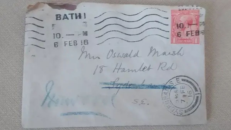 Pismo poslano februara 1916. godine konačno je stiglo na odredište u južnom Londonu, na adresu u Hamlet Road, više od sto godina kasnije, na zaprepaštenje sadašnjih stanara.