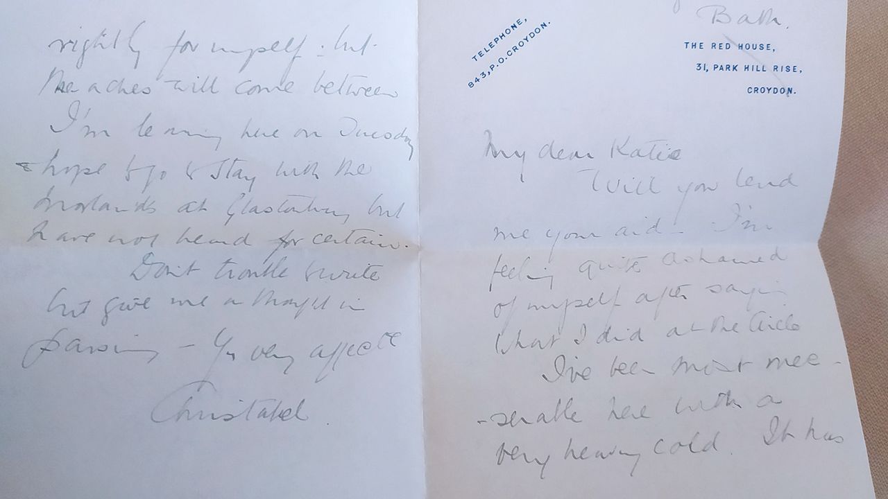 Pismo je napisala Christabel Mennel, kćerka trgovca čajem Henryja Tukea Mennela, dok je ljetovala u Bathu.