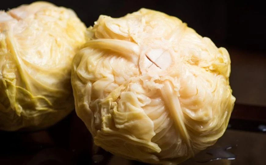 Kad odaberete pravi kupus, očistite ga temeljno od spoljnih listova, a onda zarežite svaki korijen „na plus“ i izvadite sredinu što više možete. U svaku izdubljenu glavicu sipajte po kašičicu soli, pa ih redajte pažljivo jednu uz drugu.